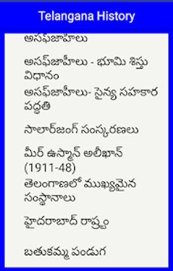 De Telangana History-app biedt een uitgebreide verzameling studiemateriaal en gratis online examens gericht op de geschiedenis van Telangana. Deze applicatie is ontworpen voor Android-gebruikers en is volledig gratis beschikbaar. De inhoud is georganiseerd rond meer dan 12 verschillende onderwerpen, waardoor gebruikers een breed scala aan kennis kunnen vergaren over de rijke geschiedenis van de regio.